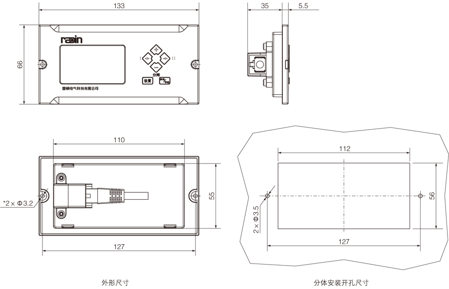 顯示控制器與轉(zhuǎn)換控制器分體設(shè)置,顯示控制器既可以安裝在開關(guān)本體面板上(一體式),也可以單獨(dú)安裝到柜門(分體式),方便用戶對(duì)自動(dòng)轉(zhuǎn)換開關(guān)狀態(tài)的檢測(cè)和控制。