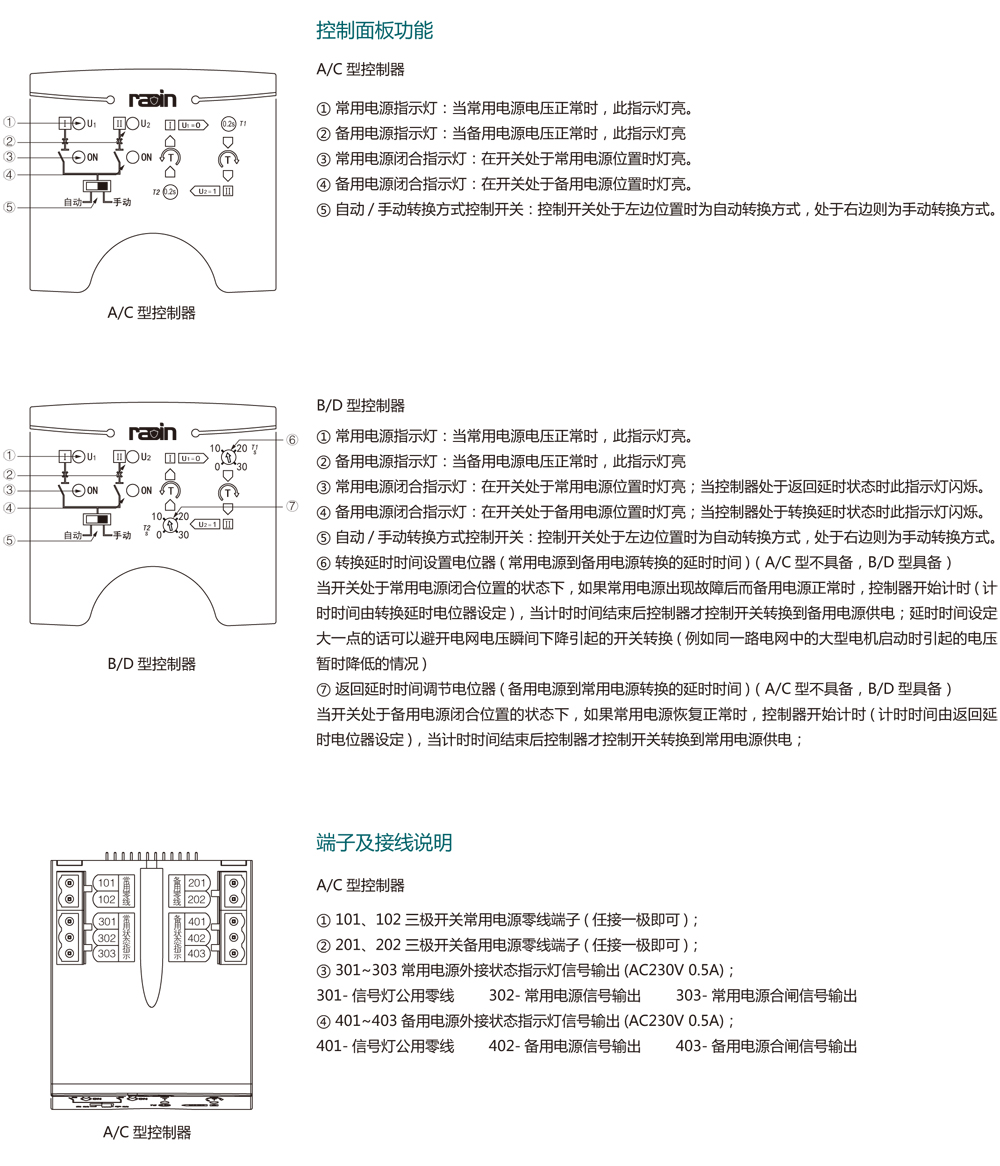 A、C 型控制器都具有欠壓和失壓監(jiān)測(cè)功能。