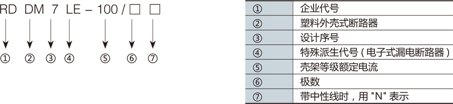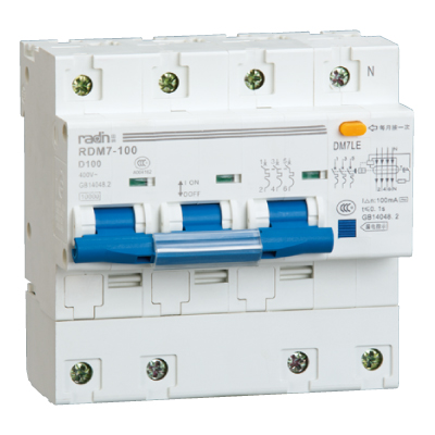 RDM7LE-100 系列漏電斷路器由RDM7-100 高分斷小型斷路器和漏電脫扣器拼裝而成。漏電斷路器系電流動作型電子式漏電斷路器,主要由零序電流互感器、電子組件板、漏電脫扣器及帶有過載和短路保護的斷路器組成。