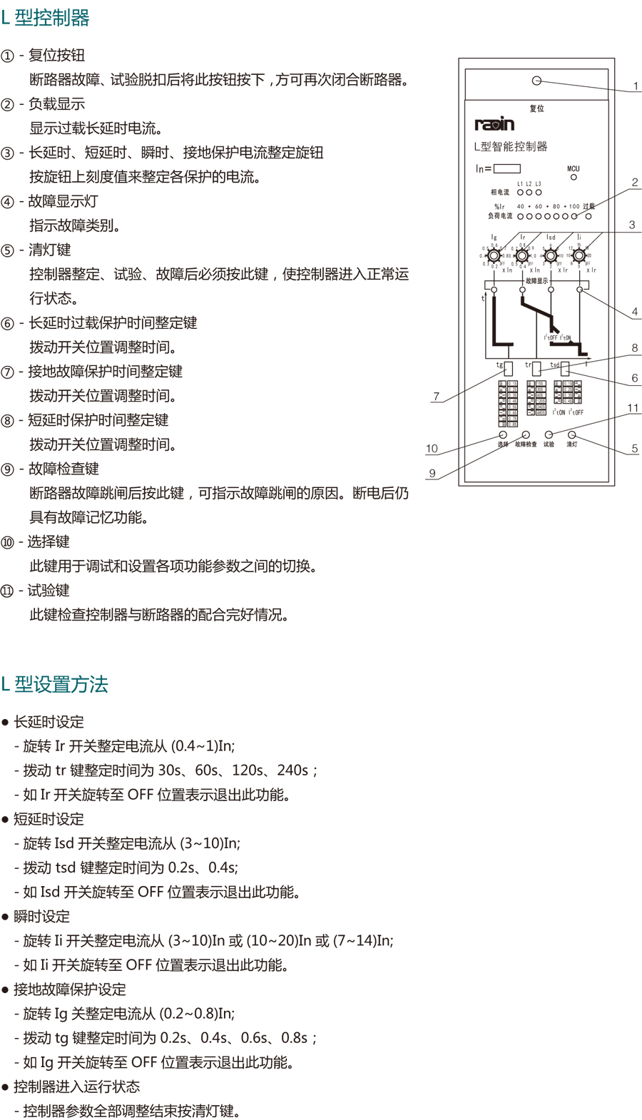 b. 具有過載長延時反時限、短延時反時限、定時限、瞬動功能??捎捎脩糇孕性O(shè)定組成所需要的保護特性;